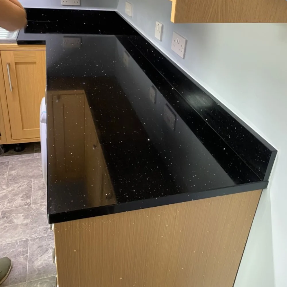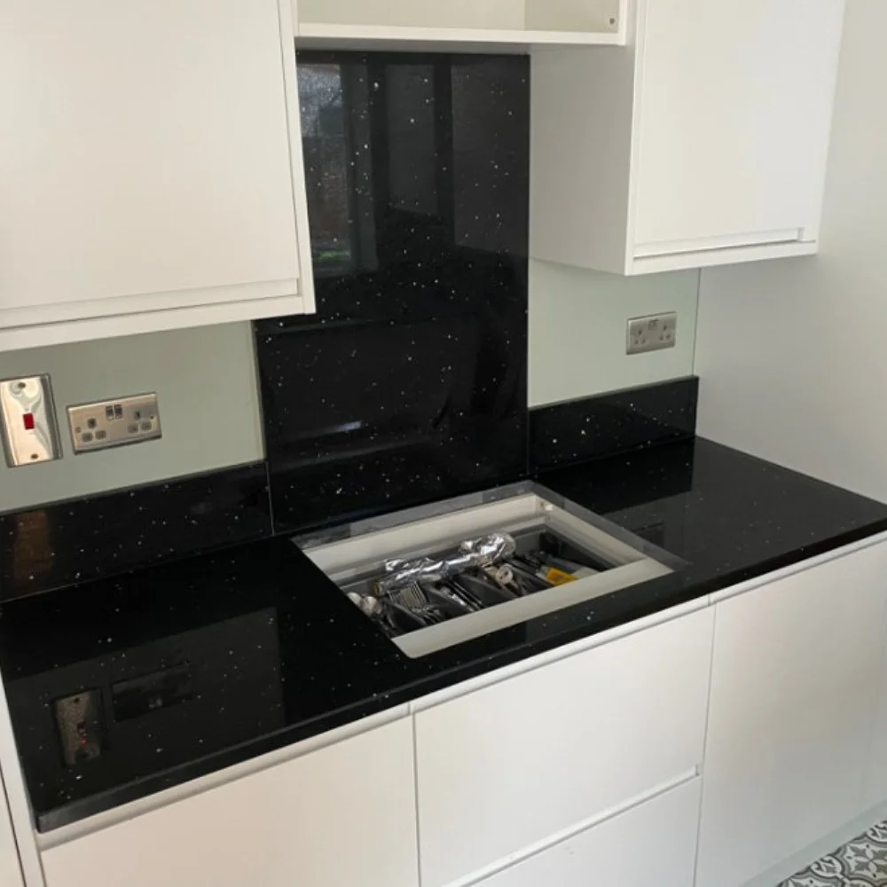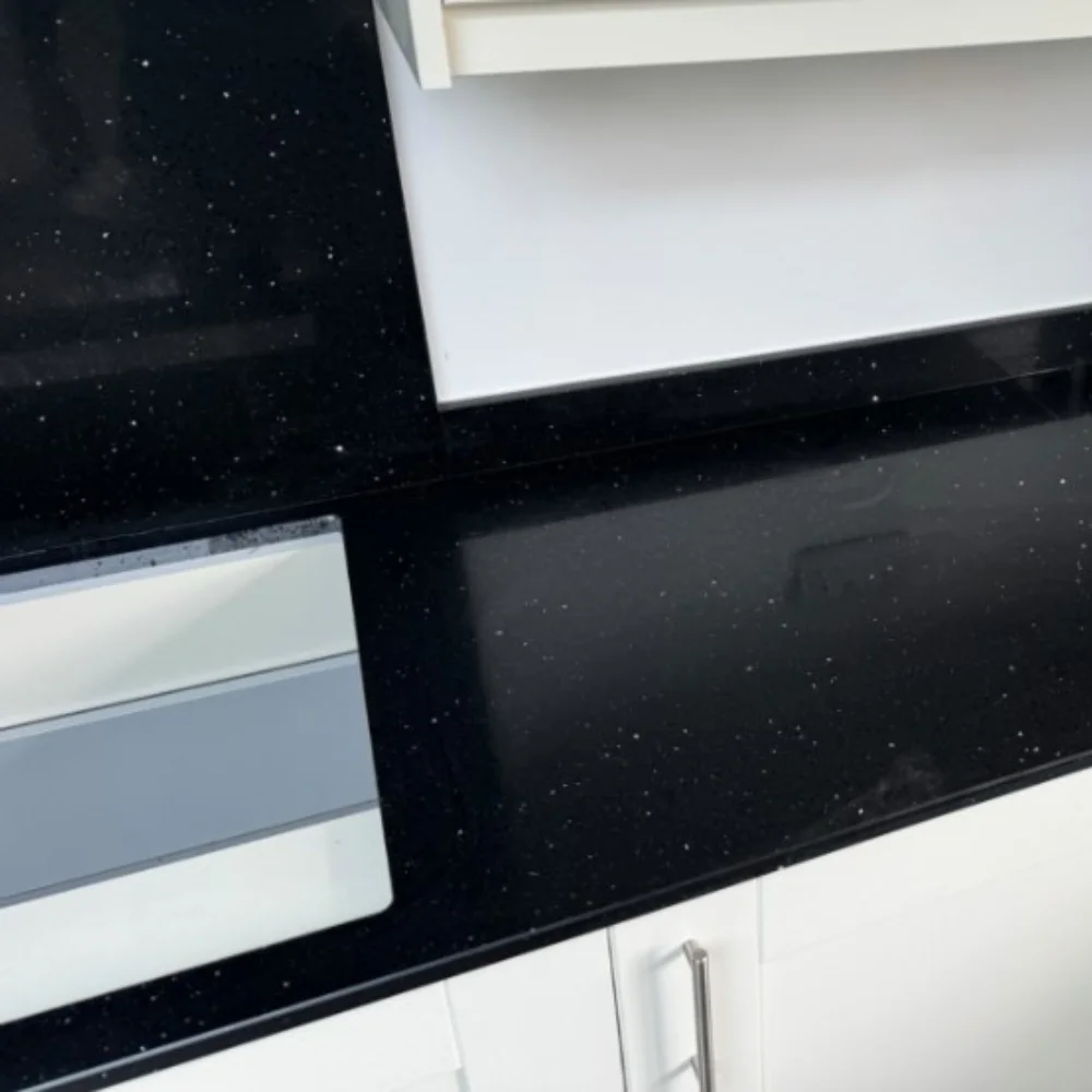 Bold, sophisticated, and effortlessly glamorous, the Black Mirror quartz worktop is a striking centrepiece for any kitchen. Its deep, jet-black background is beautifully accented with shimmering mirror-like flecks, creating a dazzling starry-night effect that brings drama and elegance into your space.