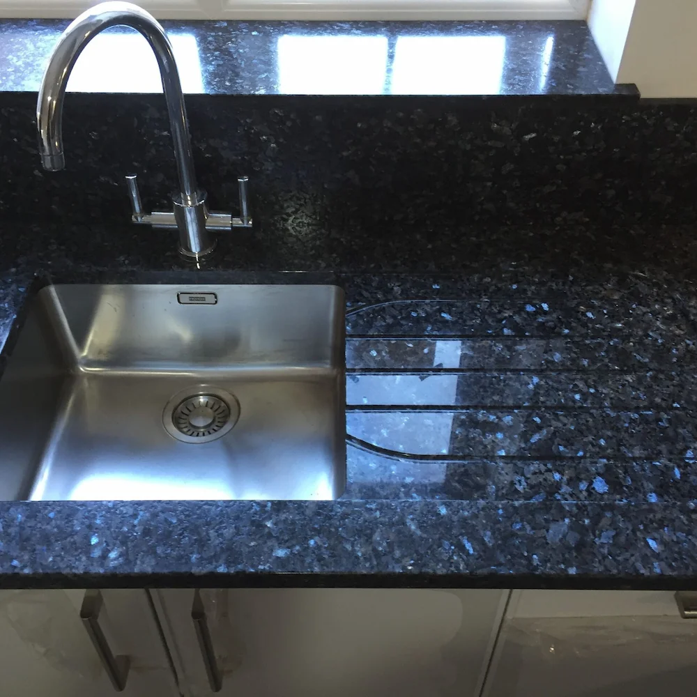 Bold, striking, and full of character, the Blue Pearl granite worktop is a true statement piece for any kitchen. Its shimmering mix of deep blues, silvers, and charcoal tones creates a dazzling, almost iridescent effect that changes with the light, bringing depth and movement to your space.