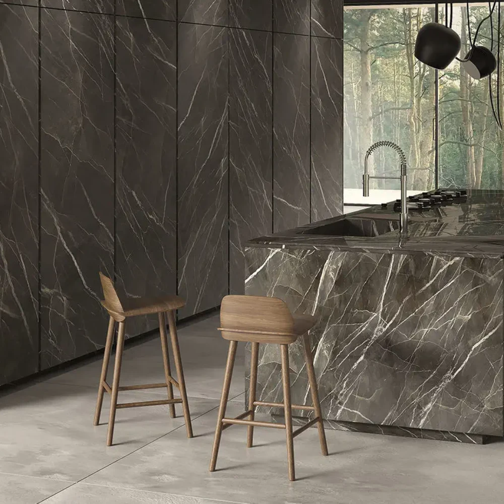 The Calacatta Black Bush Hammered surface is the perfect fusion of power and poise, bringing both strength and elegance to kitchens that dare to make a statement.