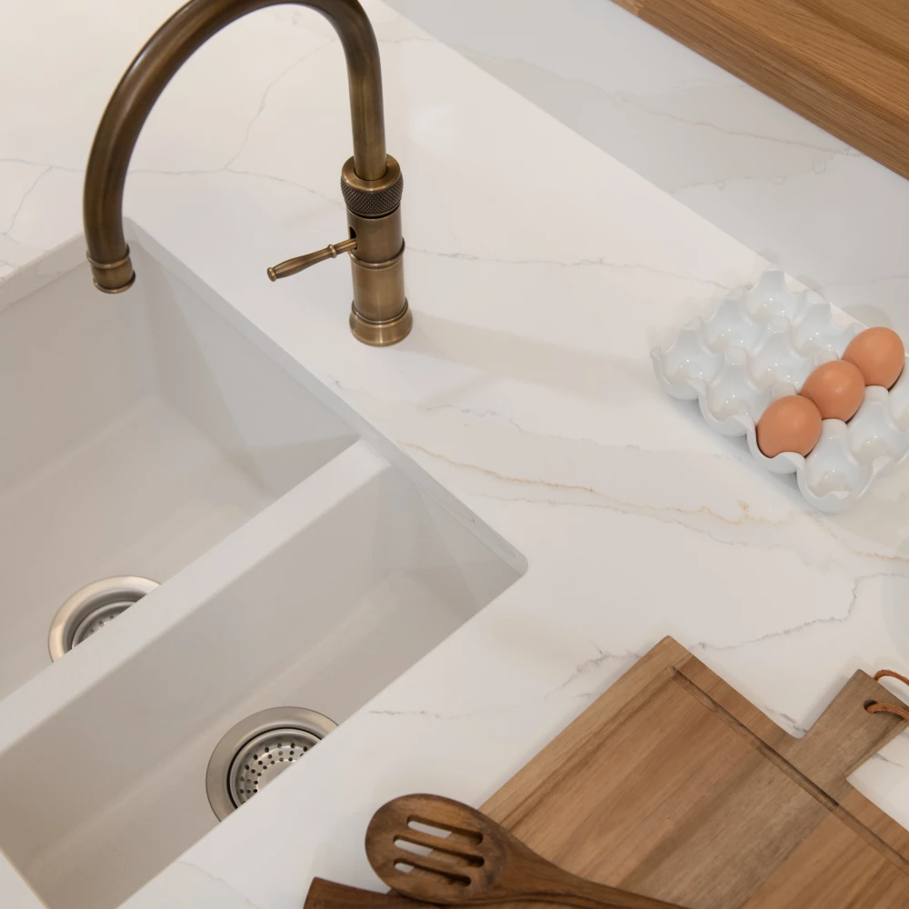 The Calacatta Dusk surface is a true statement of modern refinement, combining timeless beauty with the strength and reliability of quartz.