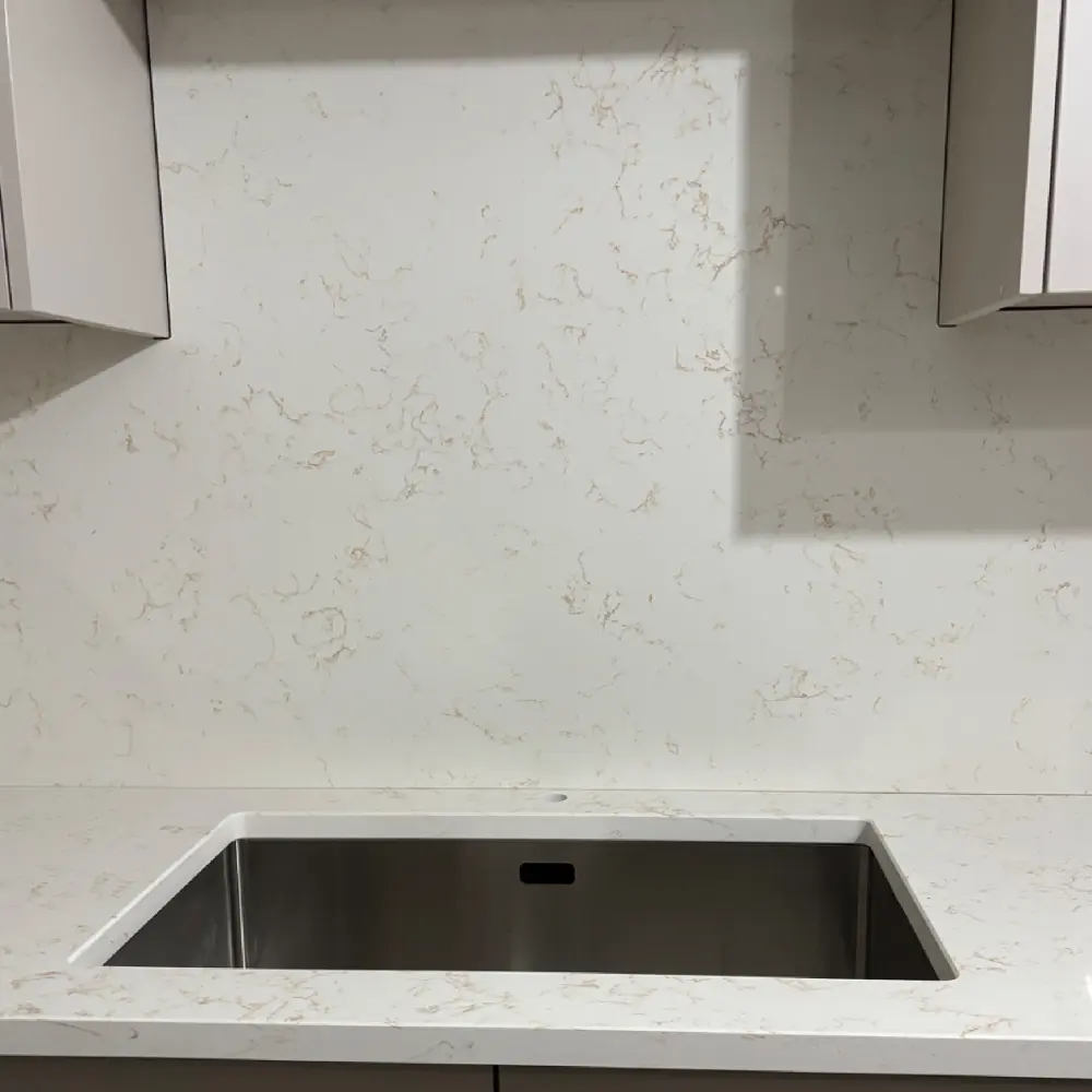 Elegant and inviting, the Creamy Veined Quartz worktop brings warmth and refinement into your kitchen. Its soft cream background is lightly detailed with subtle, organic veining, creating a natural stone effect that feels timeless yet contemporary.