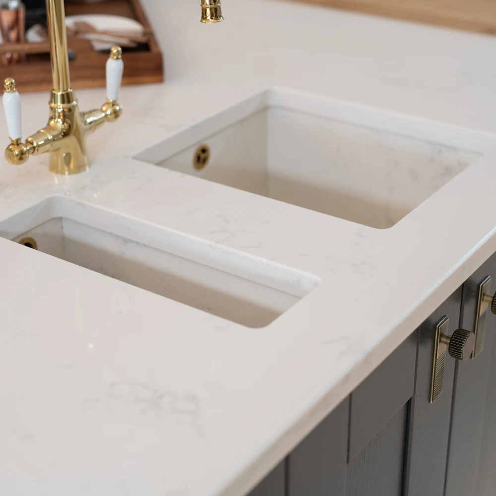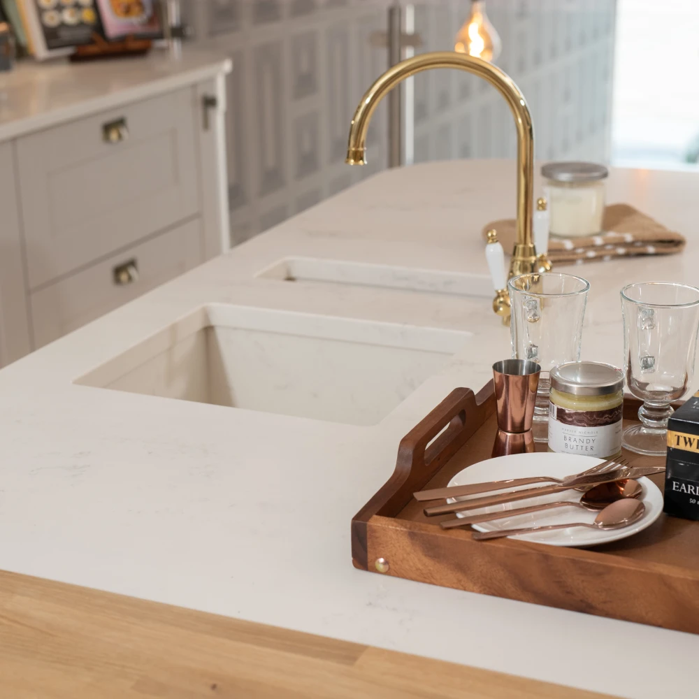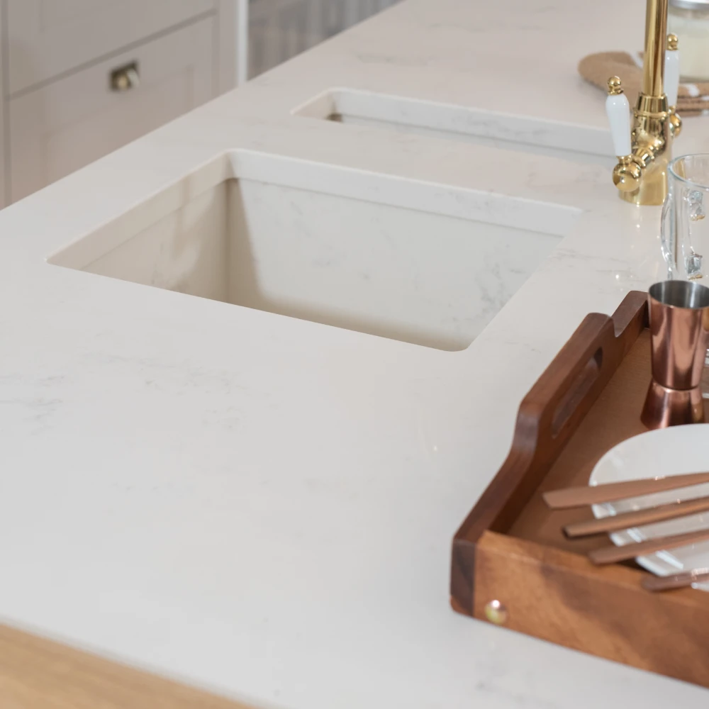For those who appreciate understated elegance, the Subtle off white Quartz worktop offers a refined balance of simplicity and sophistication. Its soft off-white background is enhanced by delicate grey marbling, creating a gentle texture that brings warmth and depth without overpowering your space.