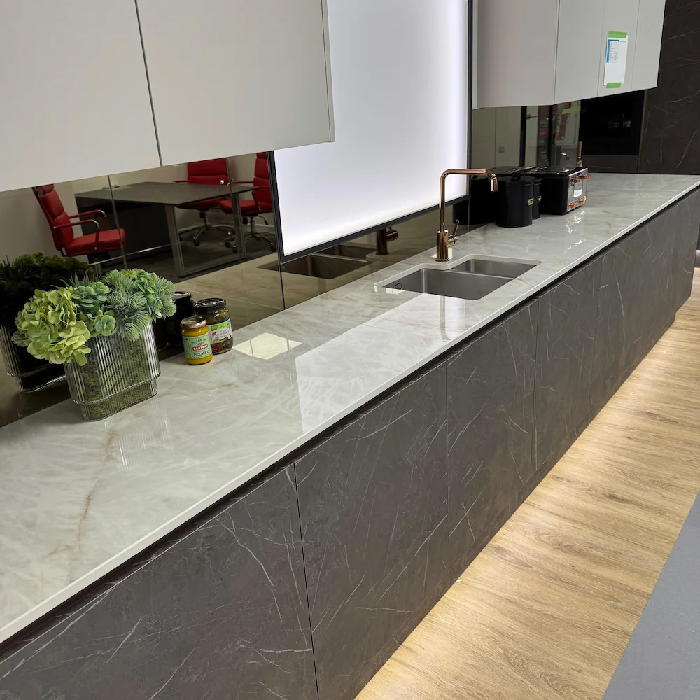 Bring the serene beauty of nature into your kitchen with the Himalayan Ceramic worktop. Its luminous white surface, delicately veined with soft crystalline patterns, captures the elegance of natural stone while offering the unrivalled strength of advanced ceramic technology.