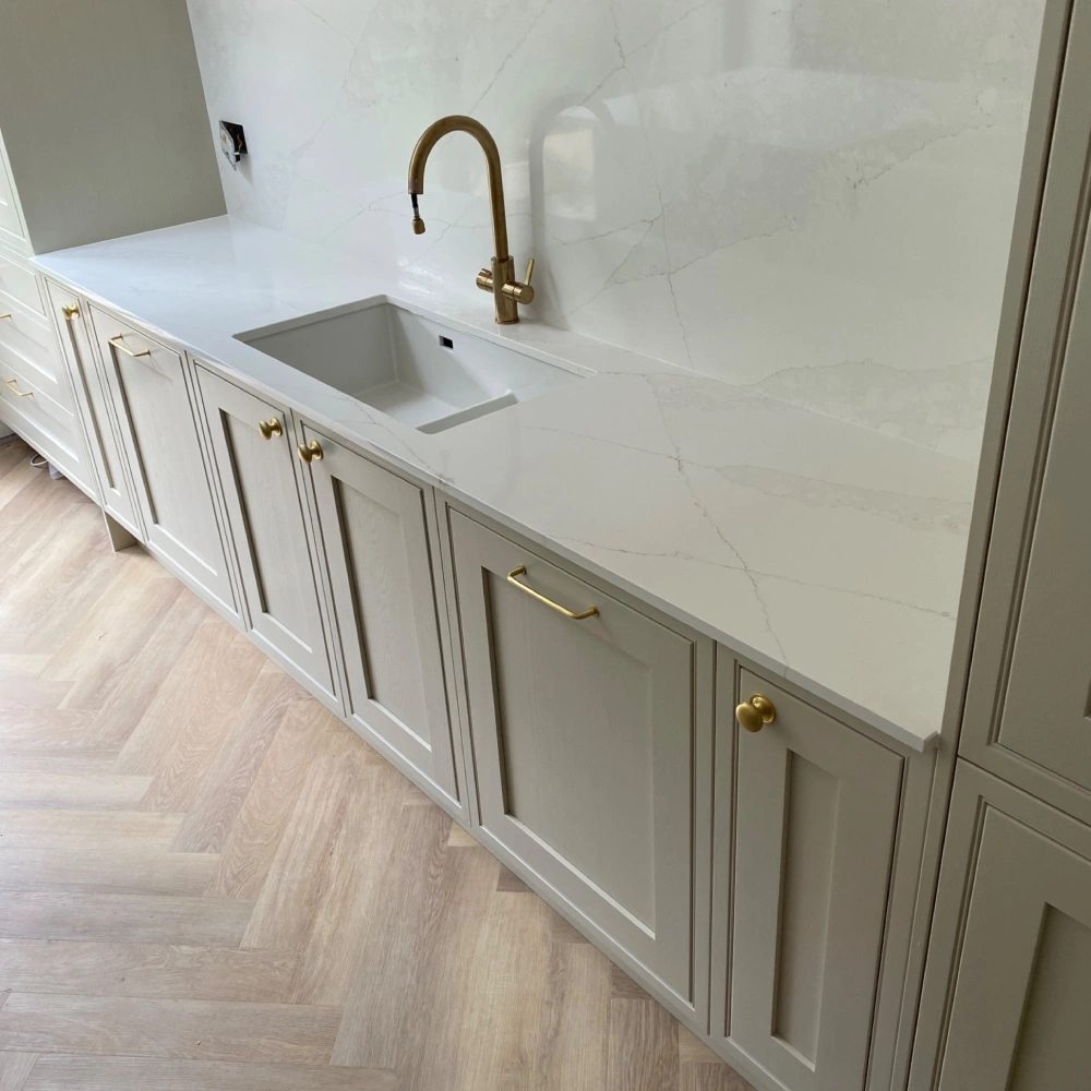 Perfect for those seeking a balance of classic charm and modern practicality, the Morning Glow Quartz worktop brings effortless sophistication to any kitchen space.