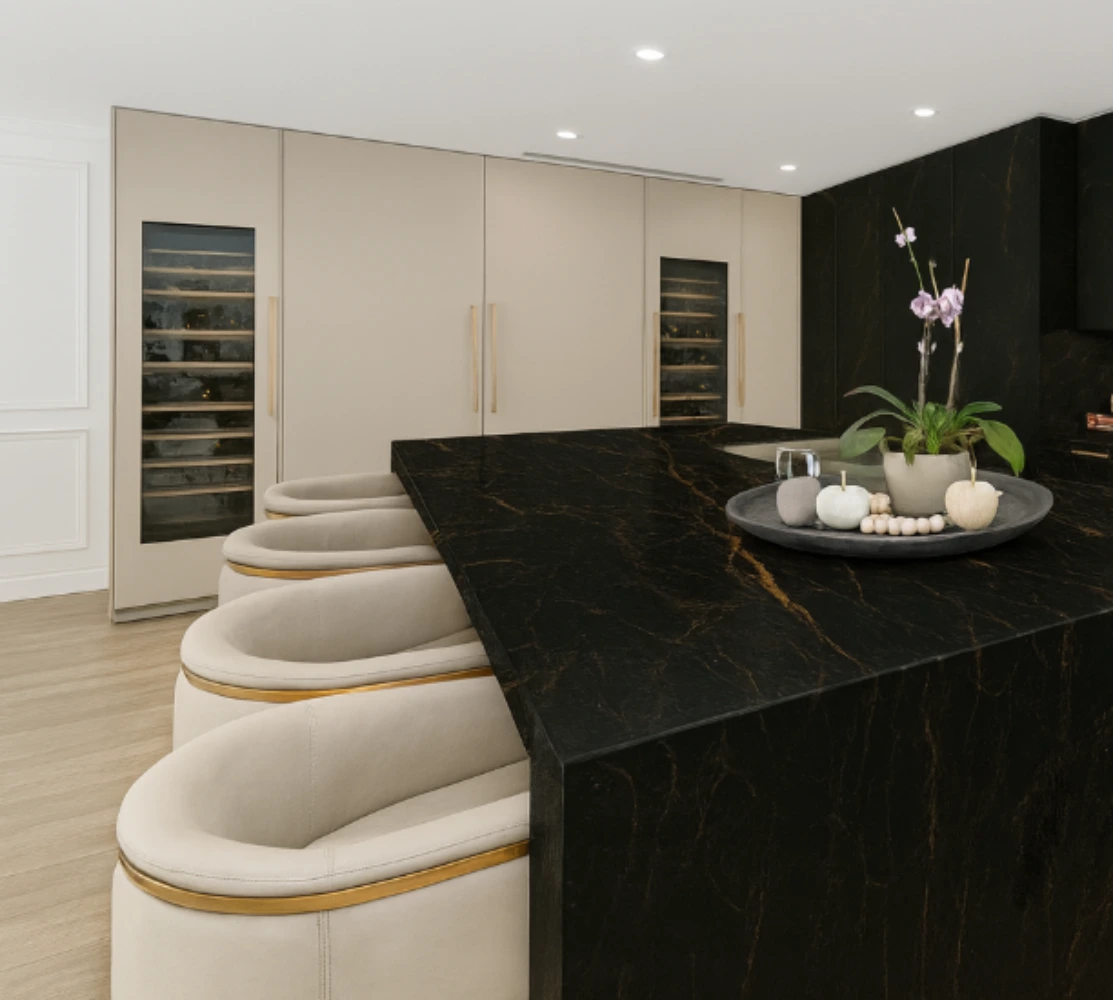 With its combination of timeless opulence and modern matte refinement, Nero Portoro is the perfect centrepiece for kitchens that demand elegance, durability, and distinction.