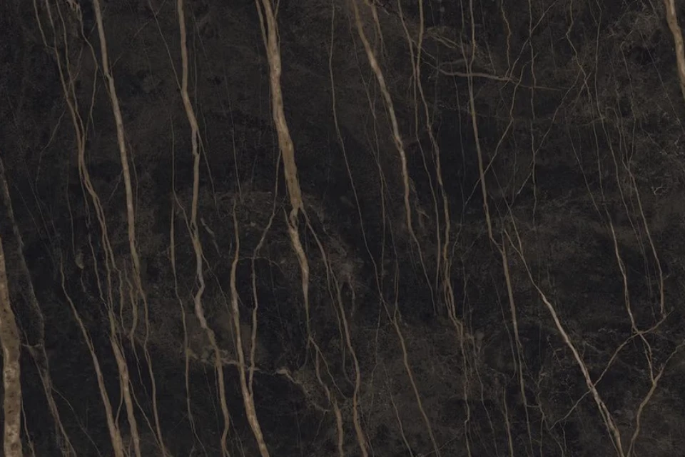Luxurious depth – rich black backdrop enhanced by striking natural-style veining.