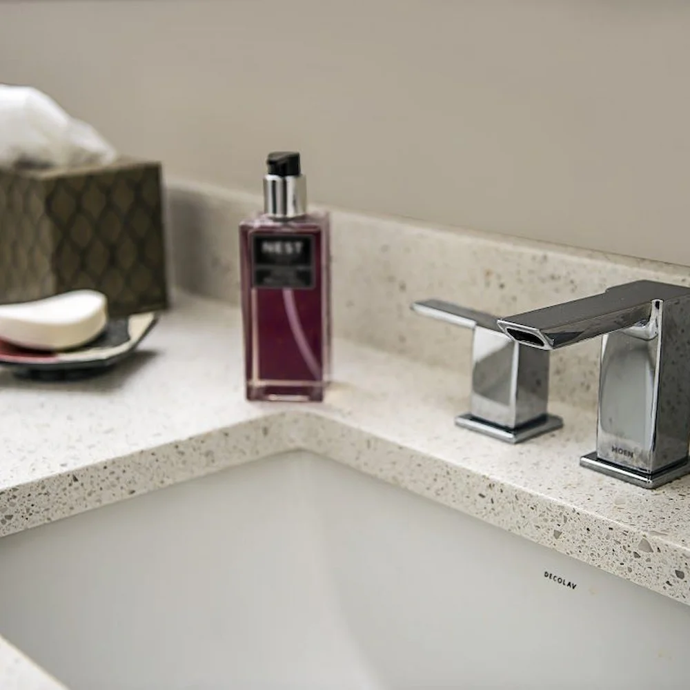 Built to last – quartz’s resilient, non-porous surface resists stains, scratches, and bacteria for worry-free living.