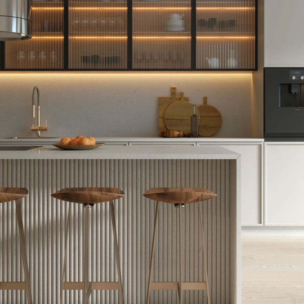 Perfect for contemporary spaces seeking understated refinement, Pebble Quartz provides a sleek yet welcoming foundation that works beautifully across both minimalist and classic kitchen designs.