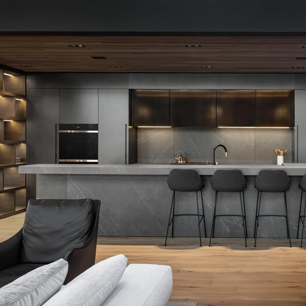 The Pietra Grey worktop transforms any kitchen into a statement of understated power — where strength meets style in perfect harmony.