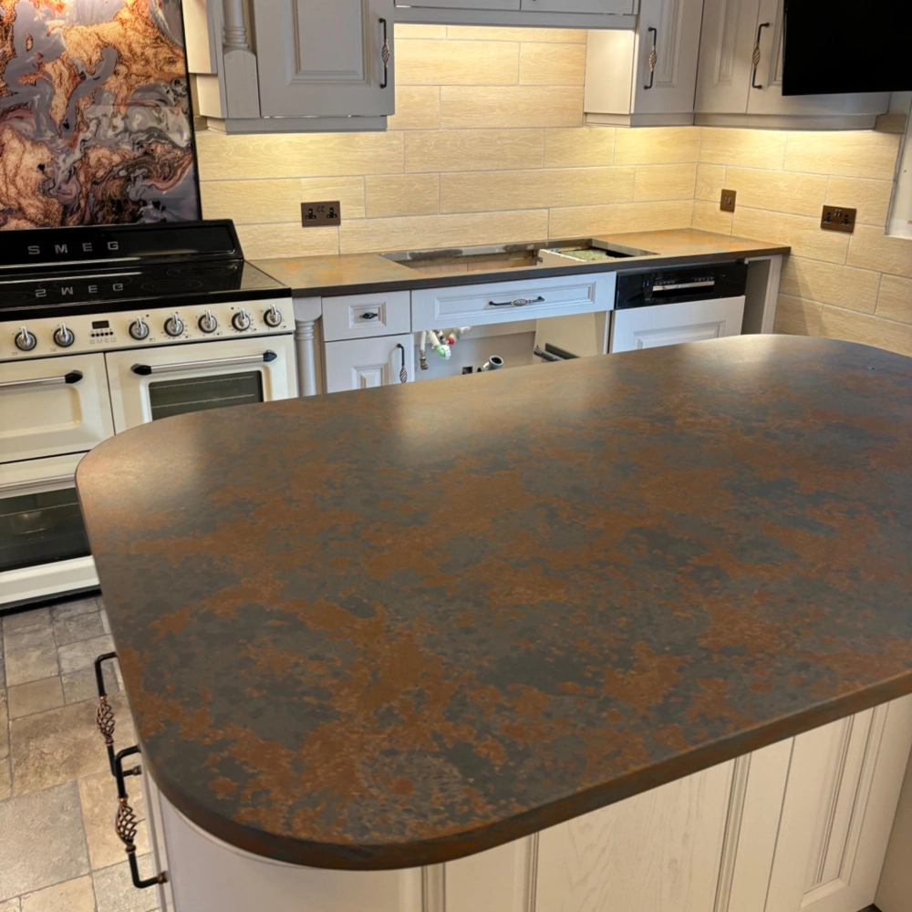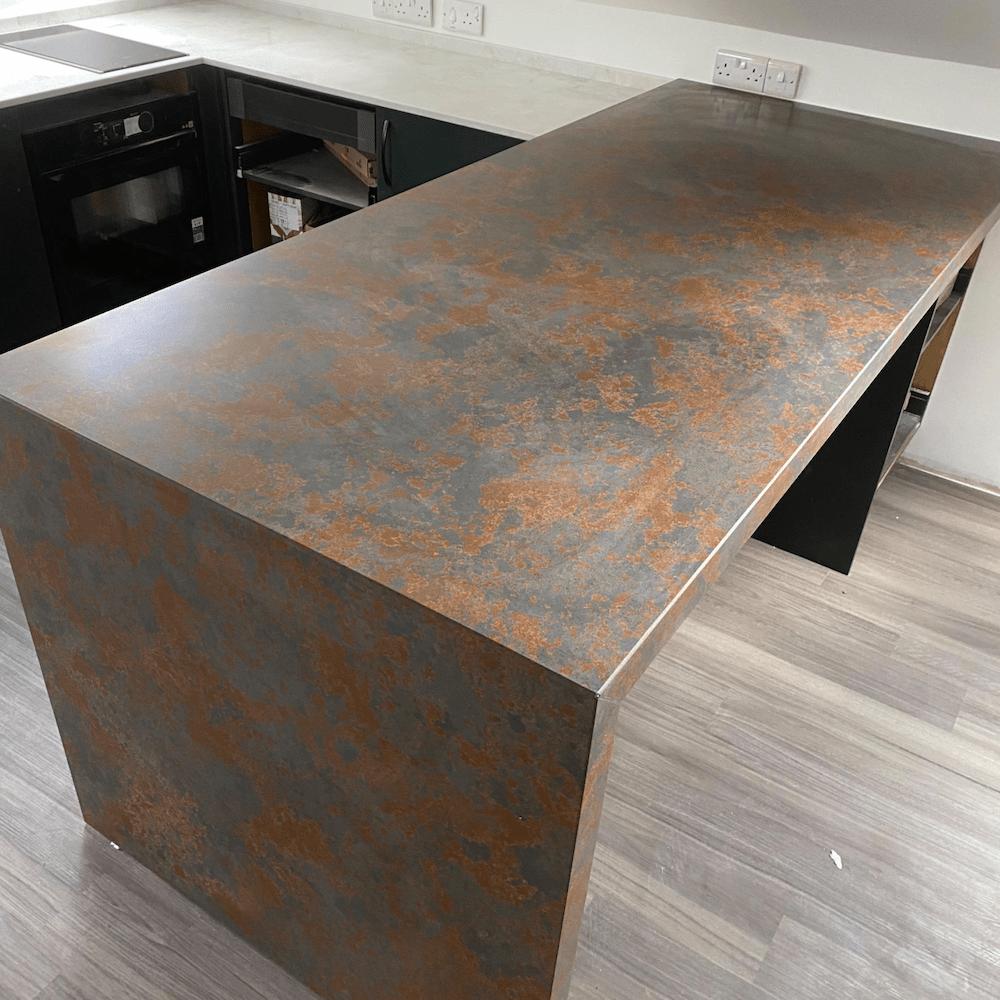 Bold, earthy, and irresistibly tactile — Resident Rustica captures the raw beauty of weathered metal and natural patina. Its textured finish brings a rugged, industrial elegance to any kitchen, blending deep charcoals with rich, burnished copper tones for a striking visual statement.