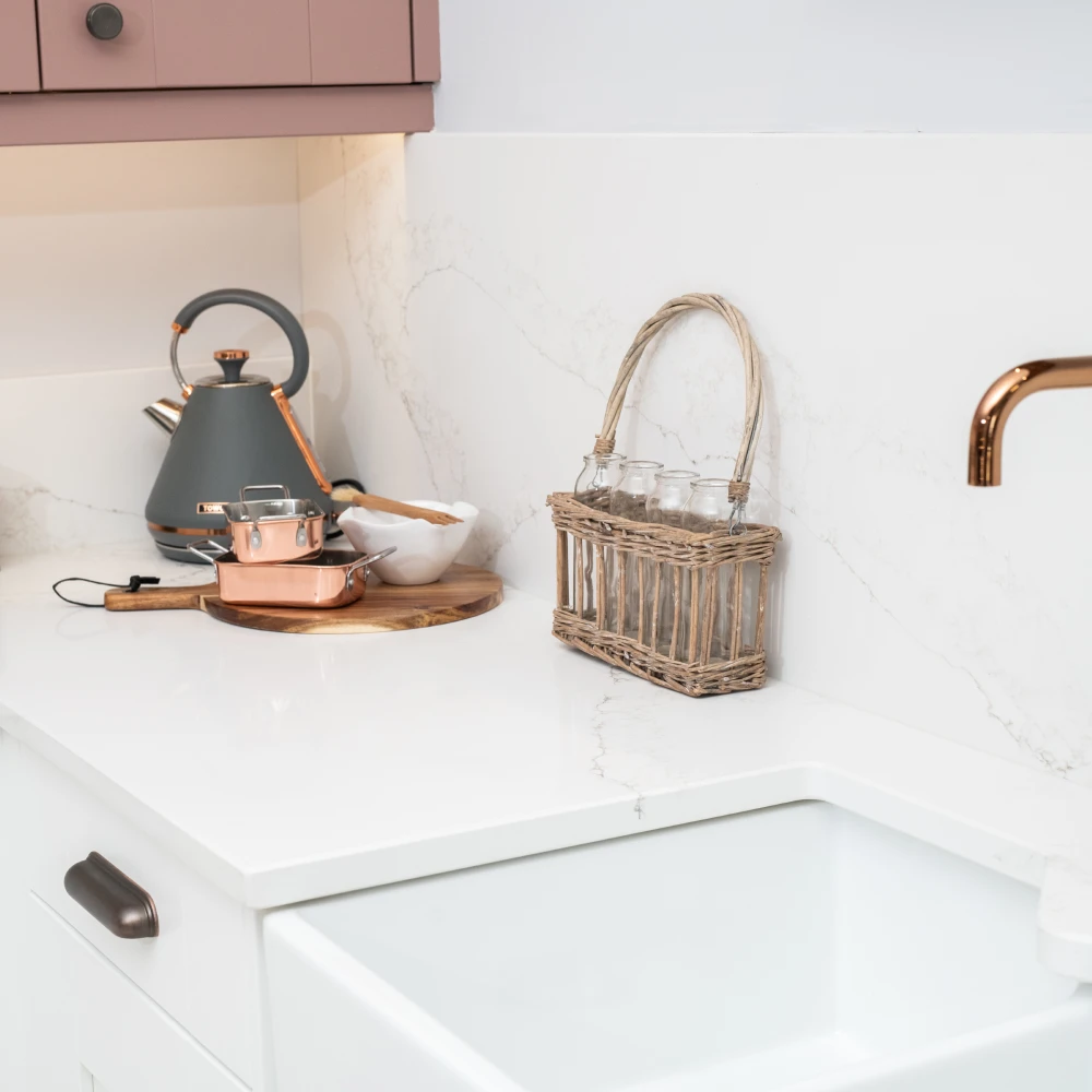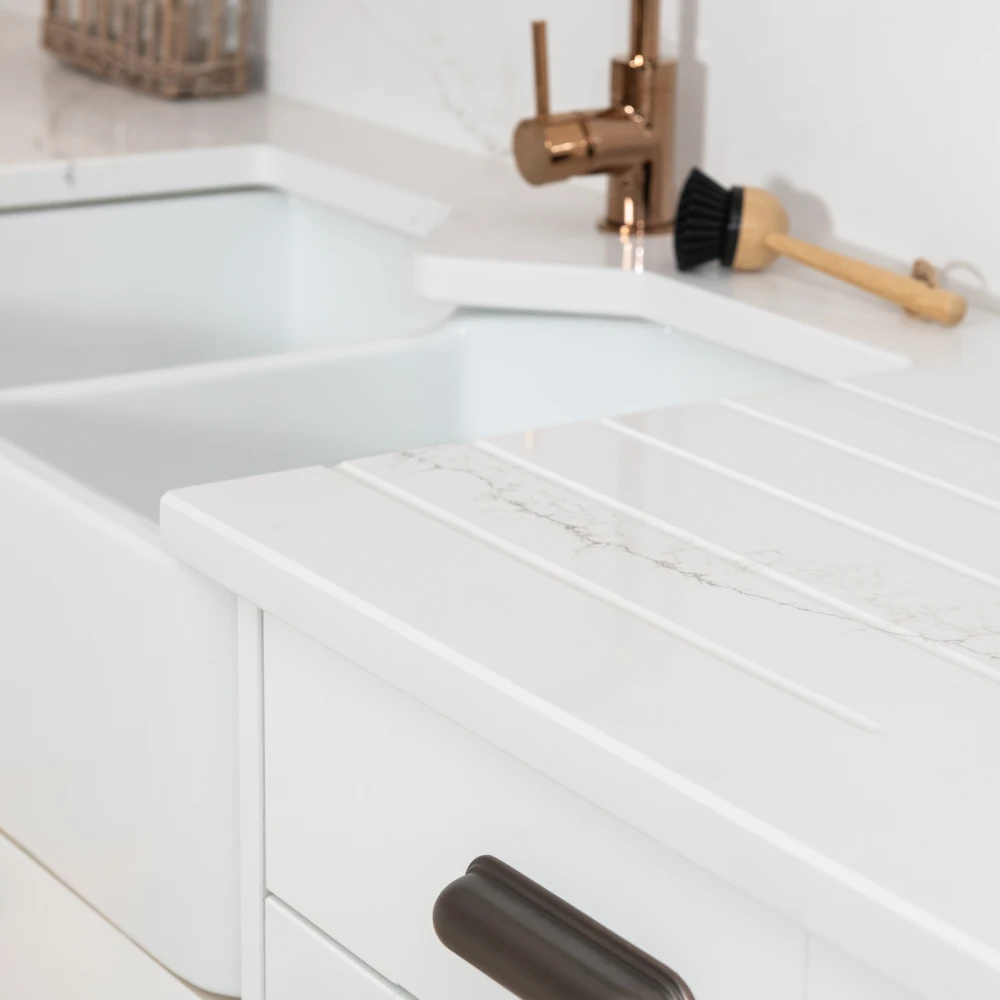 The polished finish enhances its delicate contrast and natural luminosity, reflecting light to give your space a clean, airy elegance. Strong, sleek, and effortlessly refined, Smokey Quartz is the perfect centrepiece for any stylish kitchen.