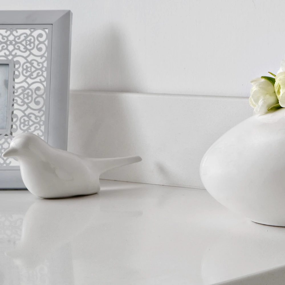 Pristine elegance – a clean white base enhanced by subtle speckling for depth and character.